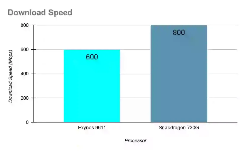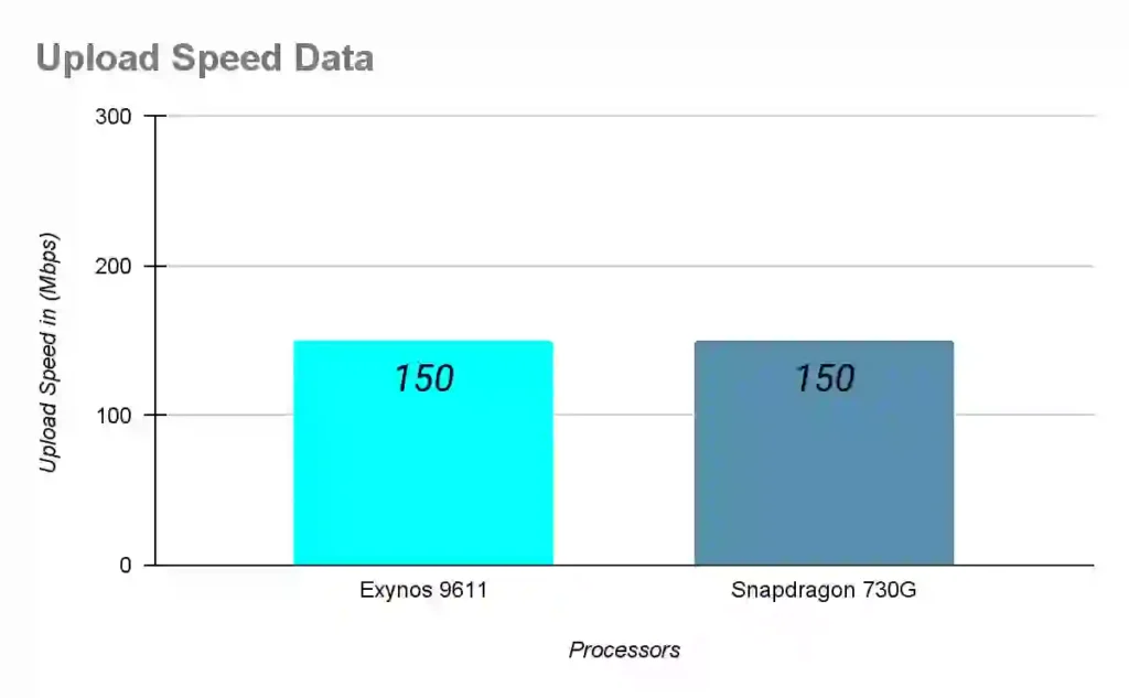 Between the Snapdragon 730g vs Samsung Exynos 9611, the upload speed of both will stay the same without any difference.
