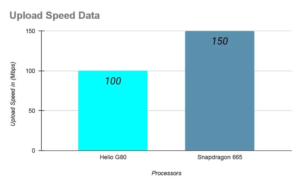 Download speed will remain at 600 Mbps on a Snapdragon 665, but the number will be lowered to 300 Mbps on Helio G80.